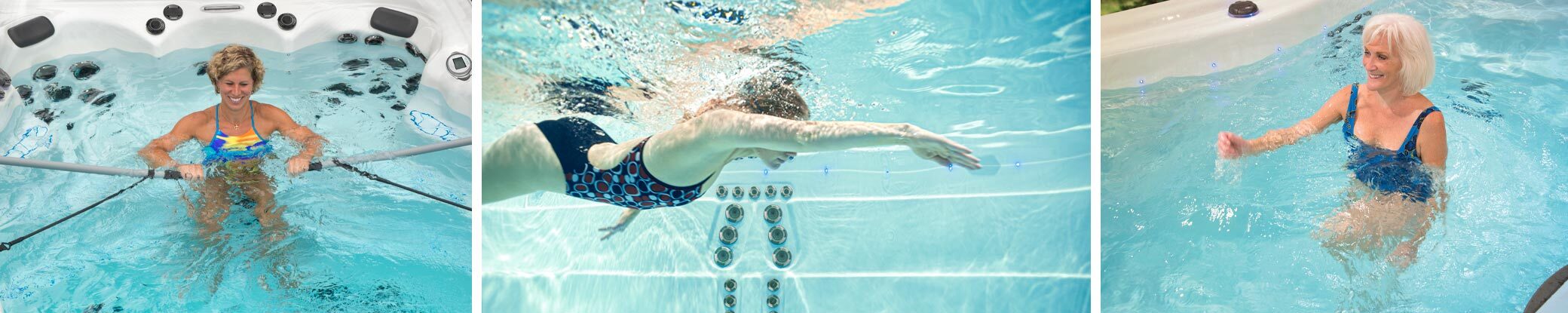 Exercising in a Michael Phelps Signature Swim Spa offers the benefits of cardiovascular and resistance training without the impact on joints. Thanks to the natural resistance and buoyancy of water, the body feels supported in a swim spa and you can move with increased range of motion. People who exercise in the water often see improved balance, strength, endurance, and flexibility — as well as less pain.